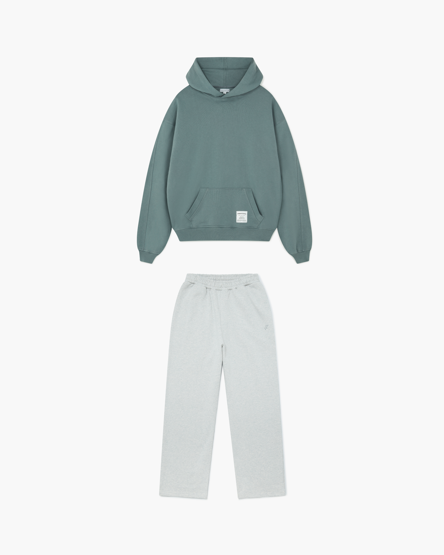 The Iron Grey Tracksuit features a boxy, cropped hoodie with dropped shoulders and a relaxed, sport-inspired fit, in Iron Grey. It’s paired with our iconic classic 90's sweatpants featuring a stright legged silhouette, designed with internal cotton drawcords and a 100% cotton label on the back welt pocket detailing the product materials. Subtle branding completes the look, with our logo embroidered on the hoodie cuff and beside the jogger pocket. A clean, versatile set — perfect for everyday wear.